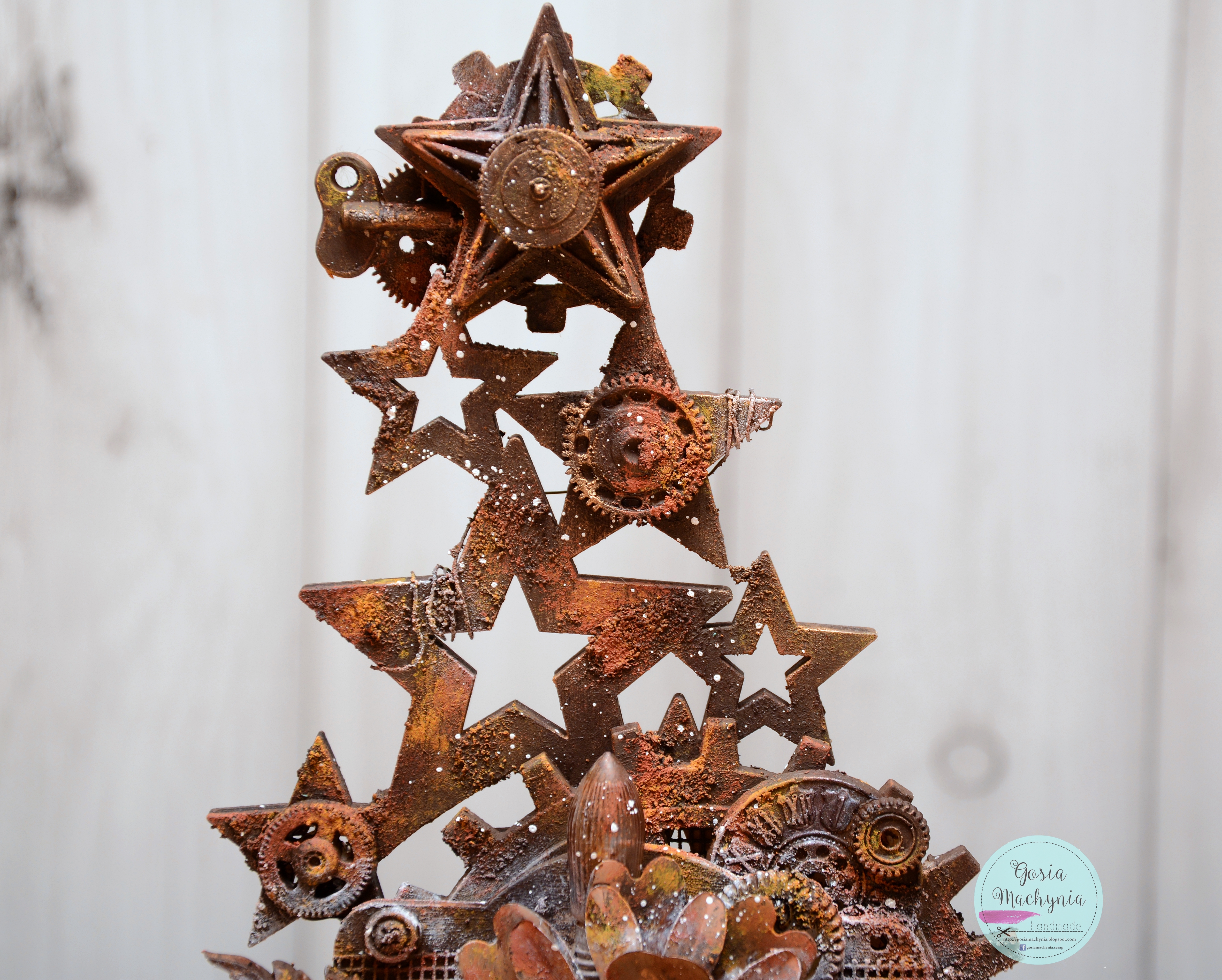 Zardzewiała choinka ... tego mi się chciało. Długo o tym myślałam i w końcu znalazłam w sobie siły na odrobinę twórczej pracy. A nic mnie tak nie relaksuje jak mediowanie.